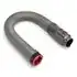 Grip the base of the hose so your thumb reaches around to press the red tab shown.