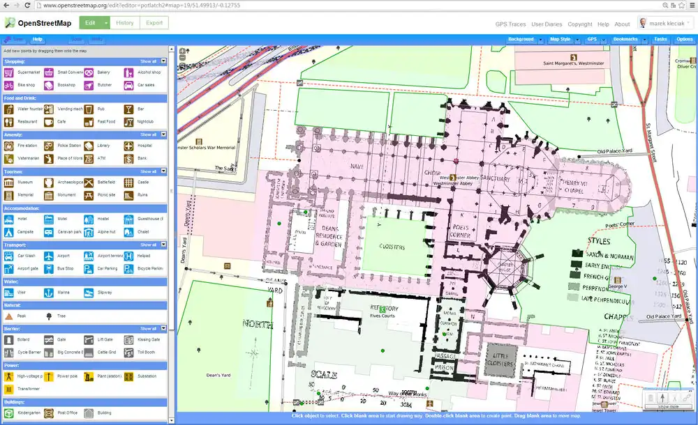 In case of complicated, historic buildings with existing free avaiable ground plan (e.g. Wikipedia) one can import and place this data in OSM by use of http://mapwarper.net.