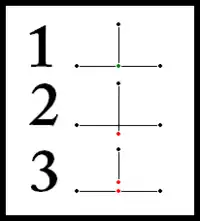 Fig.5 When connecting two roads together they must both link to a shared node. Fig.5, Image 1. A common beginner's error is to overlap 2 ways and presume a connection, Fig.5, Image 2, or place nodes very close to one another, but not form a connection Fig.5, Image 3. Neither of these 2 last techniques work. To make a connection when drawing a way, just click on the way, or node, you wish to connect to. Using the short cuts 'n' or 'a', and then clicking on a node or way, will stem a new way from that point. To check if you have done it correctly, shift a node and then undo, if both ways move, it is correct.