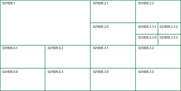 The CanVec product is tiled based on National Topographic System (NTS) map sheets - see . Each map sheet is subtiled using a quadtree algorithm. Subtree naming convention is SW=0, NW=1, NE=2, SE=3. A tile is splited when there is more than 25K nodes in it. Each tile is a separate .osm file. All files are zipped together.