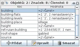 - Někdy se vyplatí natrasovat i ty budovy, které už pocházejí z RÚIANu, ale pomocí dřívější verze traceru. Ta novější totiž přidává i počet pater, počet bytů a přesnější hodnoty tagu