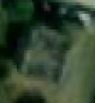 | Horní budova ještě neupravená, dolní (označená) už rozdělená: |