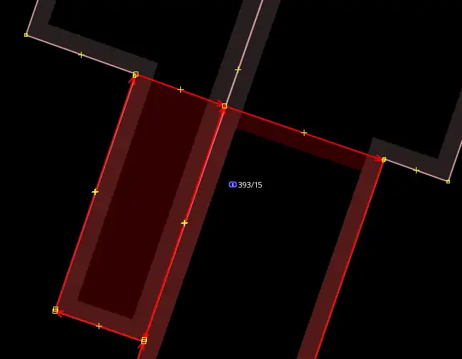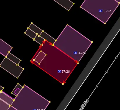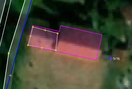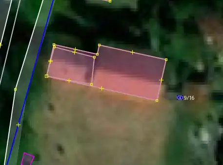 Jestliže nad vrstvou Český RÚIAN budovy vidíme již zakreslenou budovu která je hodně podobné velikosti ale jiného/stejného tvaru, zkontrolujeme nejdříve zda již zakreslený tvar není stejný jako ten na ortofotu. Pokud ne a tvar na ortofotu se podobá tomu z vrstvy Český RÚIAN budovy, klikneme s puštěným tracerem do již zakreslené budovy a ta se automaticky přetrasuje.