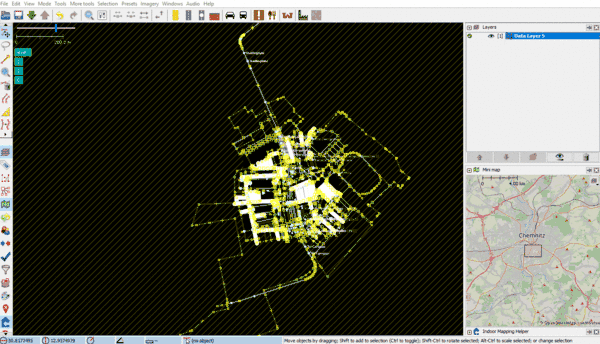 - Zunächst müssen die OSM-Daten für das interessierende Gebiet heruntergeladen werden. Siehe dazu: mit JOSM Daten vom OSM-Server laden