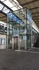 Befindet sich die Eingangstür zu einem Fahrstuhl in einem Innenraum (z.B. in einer Bahnhofshalle), verwende indoor=door als Haupttag für die Tür(en). Ist eine/die Tür des Aufzugs "draußen" und stellt somit selber einen Eingang zum Bahnhof dar, verwende stattdessen entrance=yes.