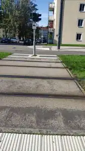 Falls die Umlaufsperre einen Bahnübergang absichert, kann dem Node , der den Bahnübergang repräsentiert, zusätzlich der Tag crossing:chicane=yes gegeben werden.