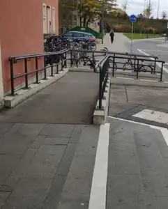 abgesenkten Bordsteinen und Überquerungen mit Bodenindikatoren,