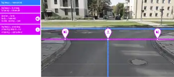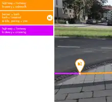 Achtung: Bodenindikatoren, die über Fläche verlaufen und nicht Teil eines existierenden Ways sind, müssen separat als mit tactile_paving=* erfasst werden.