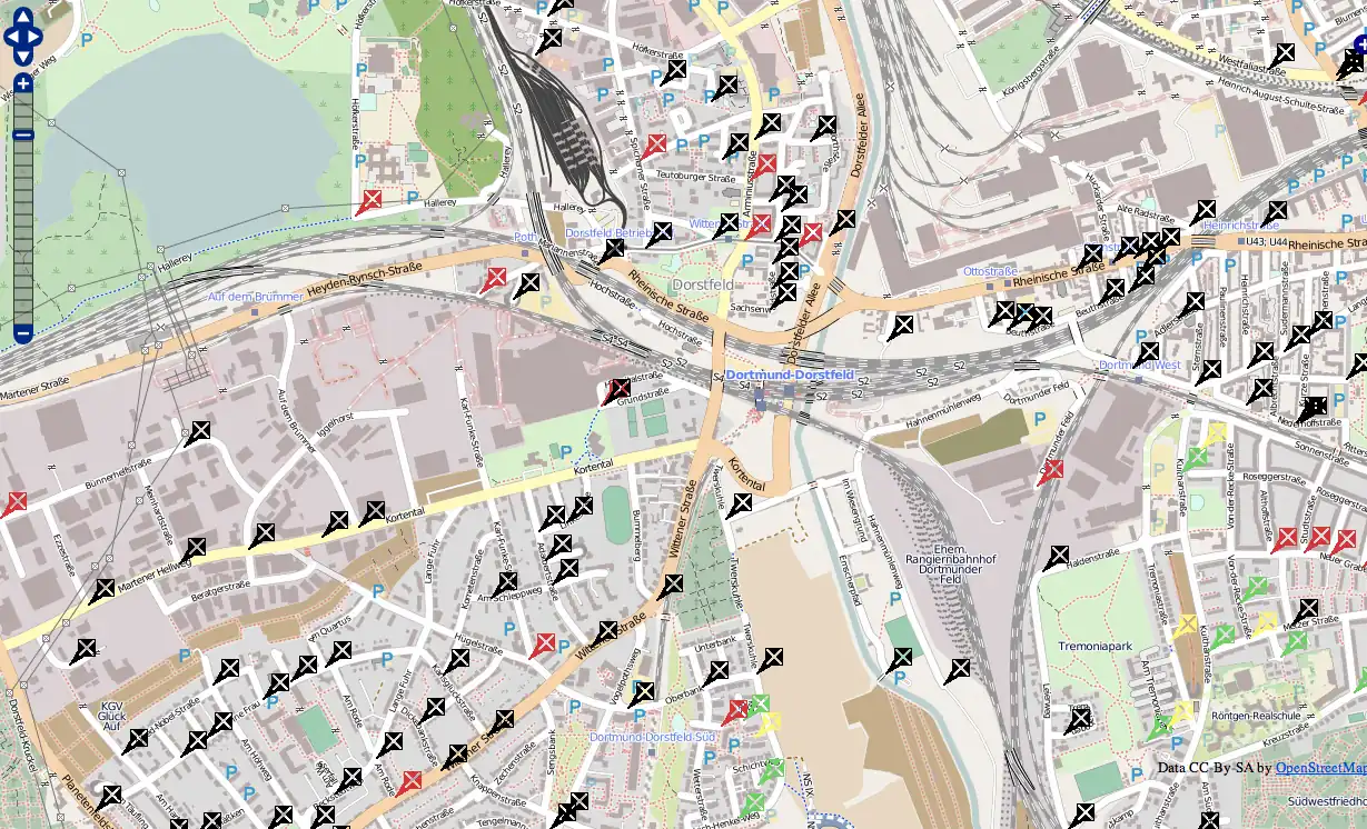 | Olaf | Grundstr., Hochstr., Bahnhof Dorstfeld, Thusneldastr., Flavusstr., Wörthstr. | Gebiet um Bahnhof Dorstfeld, Gebiet zwischen Arminiusstr., Rheinische Str, Dorstfelder Allee und Höfkerstr |