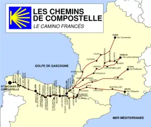 Paris - Orléans - Cléry St André - Tours - Châtellerault - Poitiers - Melle - Aulnay - St Jean d'Angeli - Saintes - Pons - Blaye - Bordeaux - Belin-Belier - Saugnacq-et-Muret - Vieux-Richet - St Paul-les-Dax - Sorde-l'Abbaye - Sauveterre-de-Béarn - Saint-Palais |