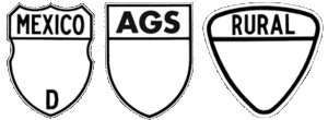 Las carreteras federales se identifican por la palabra MEXICO y el escudo tiene arcos cóncavos a los lados y parte superior, las carreteras estatales por la abreviatura del estado (p. ej.: EM, AGS, etc.) y se tienen líneas rectas a los lados y parte superior, y los caminos rurales por la palabra RURAL y una forma de pera invertida. En carreteras de acceso restringido o cuota se les agrega en la parte inferior la letra D.