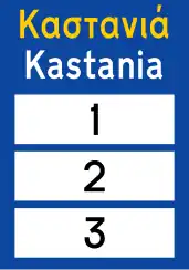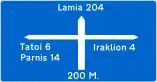 Προειδοποιητική κατευθύνσεως με αναγραφή κατευθύνσεων και χιλιομετρικών αποστάσεων σε οδούς τοπικού οδικού δικτύου. | Βλ. τις γενικές οδηγίες για πινακίδες προορισμού. Επίσης χρησιμοποιείστε το destination:distance=* για τις χιλιομετρικές αποστάσεις μόνο σε ειδικές περιπτώσεις. Γενικά, η απόσταση από τον προορισμό μπορεί να εξαχθεί από δεδομένα OSM και δεν χρειάζεται να επισημανθεί.
