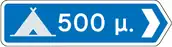 | Π-11 | Κατεύθυνση προς κατασκήνωση | Βλ. τις γενικές οδηγίες για πινακίδες προορισμού. Επίσης χρησιμοποιείστε destination:symbol=camp_site για το σύμβολο της κατασκήνωσης και destination:distance=* για την απόσταση προς αυτήν (σημ. χρησιμοποιείστε την τελευταία ετικέτα μόνο σε ειδικές περιπτώσεις. Γενικά, η απόσταση από τον προορισμό μπορεί να εξαχθεί από δεδομένα OSM και δεν χρειάζεται να επισημανθεί.)