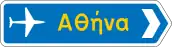 | Π-20 | Επιβεβαιωτική πινακίδα (παράδειγμα). | Βλ. τις γενικές οδηγίες για πινακίδες προορισμού. | |