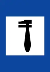 | Π-8α | Κατεύθυνση μίας τοπωνυμίας με μορφή βέλους | Βλ. τις γενικές οδηγίες για πινακίδες προορισμού. | |