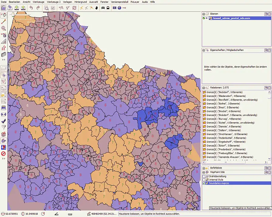J’essaie ce qui suit avec JOSM. Le fichier de données source peut être un pays ou une une aire plus petite récupérée via geofabrik.de ou cloudmade.com, qui ont été minimisé via le Osmfilter --keep="boundary=" ou un argument similaire.