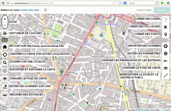 uMap est un logiciel open source sous licence AGPLv3 qui propose des instances en ligne. Il permet de créer en quelques minutes une carte basée sur OpenStreetMap et de l’afficher dans un site Internet. Vous pouvez créer des cartes personnalisées (voir les exemples sur les pages d'accueil des instances).