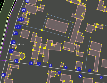 • on choisit ensuite la façade qui héritera du n°, parmi les façades des bâtiments retenus