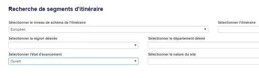 - Dans « sélectionner l’itinéraire », sélectionnez EV3. Dans cet exemple l’itinéraire cyclable EV3 passant en France est sélectionnée entièrement. Un utilisateur qui souhaiterait sélectionner une portion d’itinéraire à une échelle plus fine peut utiliser les options suivantes :