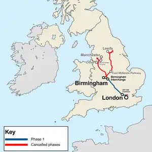 The northern limit for Phase 1 will be a connection onto the WCML north of Lichfield. This part of the line would be operative with compatible high-speed trains moving onto the classic track WCML while the western leg of Phase 2 is being built.