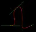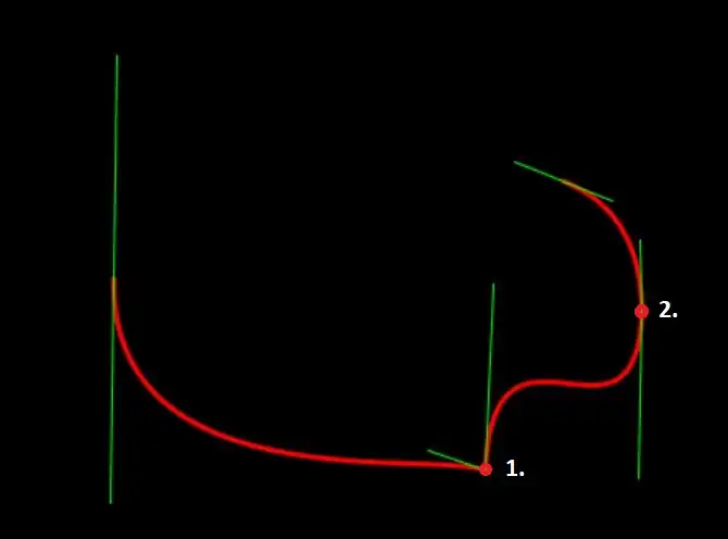 Green lines are tangents with control points at ends, red line is the resulting spline: