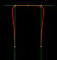 Note: Keeping CTRL button pressed, you can modify the tangents. Point nr. 1 in the example below has different angles and lengths left and right Point nr. 2 two different lengths left and right: