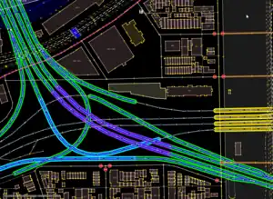 This layers view of Washington using ITO Map shows how elements are correctly organised with elements that pass over other elements using layer 1 (red) unless it is necessary for them to to use layer 2 (orange). Some elements are using layers -1 or -2 as appropriate. |