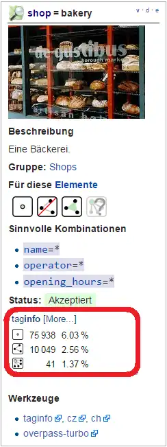 This page should provide an overview about the POIs, which are used in OSM. By clicking on an element (POI-Tag) ,a detailed description, the most common application and the possible combinations with other tags will be shown.