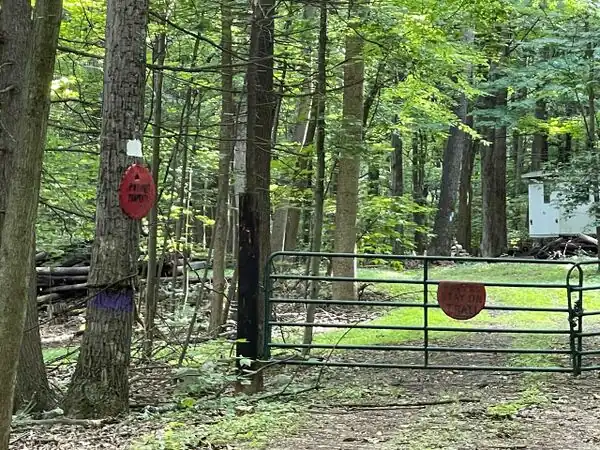 A purple mark on the tree near a private property in Colonel Denning State Park