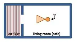 door:safetydirection safe The door opens towards the more safety area, e.g. into the room or into the building.