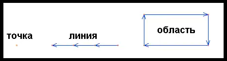 Линии: Набор точек, отображаемых соединенными сегментами линий. Используются для обозначения дорог, путей и т.п.- Замкнутая линия: Область образуется линиями, которые замыкаются. Используются для обозначения областей, таких как парки, озера, острова, здания и т.п.
