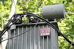 | A standalone distribution transformer transfers power from the distribution grid to directly connected electricity consumers. Installed outside of any substation. |