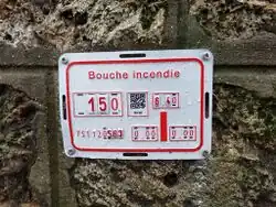 Those plates are currently rolled out by Eau de Paris and gives several information about a near hydrant installed at stated distances from the marker. The hydrant is fed by water main of given diameter |