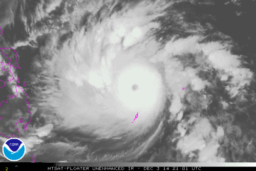 Typhoon Hagupit (aka Typhoon Ruby) was a tropical cyclone which impacted the Philippines in December 2014. It weakened to a category 3 typhoon before it made Landfall at 9:15pm Saturday 6th December 2014 (Local Time) at the town of Dolores, eastern Samar.