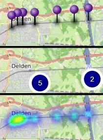 - Heatmap: Shows a 'heatmap' of the markers, depending on the zoom level.