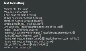{{{https://....|300*200}}}. - A Unicode character is permitted in the text. Unicode is found on the web[1]. Some examples of Unicode code characters: ♻️ Ⓜ️ ☢️ ⚠️ ⚡ ⌘ €