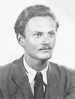 After finishing four-grade elementary school, Göncz began his secondary studies at the Werbőczy Secondary Grammar School in 1932. There he involved himself in the activity of the Hungarian Scout Association. Scouting opened Göncz's eyes to social issues, particularly with regard to the problems of the poor peasantry, as he said in a later interview.[5] Göncz joined the Pál Teleki Work Group which was formed in 1936 by Pál Teleki, an influential interwar politician and Prime Minister of Hungary, also Hungary's Chief Scout. The work group was an important seminary and forum for the university students. The programme emphasized the relevance of the nation, family and community and the good knowledge of Hungarian history and geography. In the next years, key figures from the Independent Smallholders' Party, e.g. Endre Bajcsy-Zsilinszky, had joined the work group.[6] His political view was also influenced by the népi-nemzeti ("rural-national") ideological movement since the 1930s. The group of the so-called "folk writers" (Hungarian: népi írók), including Zsigmond Móricz or János Kodolányi, expressed critique of capitalism and emphasis on peasant society and land reform. Göncz also stressed he represented the same political view as liberal political theorist István Bibó.[7] In December 1938, Göncz, in a short essay in Magyar Cserkész ("Hungarian Scout"), welcomed the Hungarians' entry into Komárno in accordance with the First Vienna Award.[8]