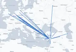 AJet Ankara,[12] Beirut,[13] Ercan,[12] Istanbul–Sabiha Gökçen[12]