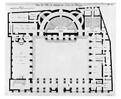 Gondoin's design for the main theatre was copied later in debating chambers and post-revolutionary government buildings. The Palais Bourbon, seat of the French National Assembly, follows this model as well.