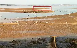 The island survived Cyclone Xynthia in February 2010 but lost 3.5 acres (1.4 ha) of its surface area and was moved 50 metres (160 ft) east.[1] On 5 October 2015 a group of 50 people landed on the island and claimed it for the department of Charente-Maritime. The group renamed the island "Tahiti" and an aircraft chartered to tow a banner reading "L’île Tahiti est aux Charentais" ("Tahiti island belongs to the Charentais"). The flag of the department was erected and the official song of the department sung.[5] The island was recognised as a hazardous destination by the port authorities in nearby Royan, Charente-Maritime. A notice to mariners was issued in 2017 regarding the island and signs were erected on it requesting that people do not land on it.[4][3]