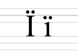 In scholarly writing on Turkic languages, ⟨ï⟩ is sometimes used to write the close back unrounded vowel /ɯ/, which, in the standard modern Turkish alphabet, is written as the dotless i ⟨ı⟩.[2] The back neutral vowel reconstructed in Proto-Mongolic is sometimes written ⟨ï⟩.[3]