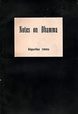 In 1963, Ñāṇavīra Thera completed a book called Notes on Dhamma (1960–1963), which was privately published by the Honourable Lionel Samaratunga in the same year (250 copies). Following production of that volume, the author amended and added to the text, leaving at his death an expanded typescript, indicated by the titular expansion of its dates, (1960–1965). Notes on Dhamma has been variously described as "arrogant, scathing, and condescending",[6] as "a fantastic system", and as "the most important book to be written in this century". Ñāṇavīra Thera himself remarked of the book that "it is vain to hope that it is going to win general approval... but I do allow myself to hope that a few individuals... will have private transformations of their way of thinking as a result of reading them".[7]