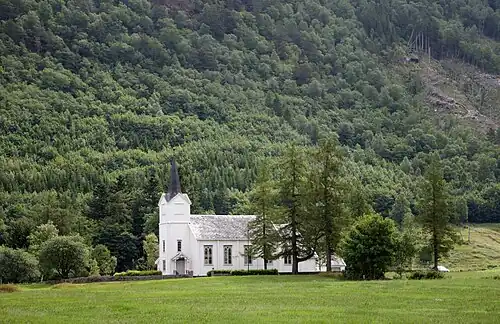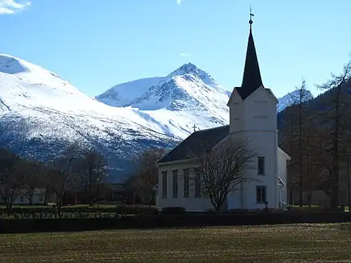 Øksendal Church (Norwegian: Øksendal kirke) is a parish church of the Church of Norway in Sunndal Municipality in Møre og Romsdal county, Norway. It is located in the village of Øksendalsøra. It is the church for the Øksendal parish which is part of the Indre Nordmøre prosti (deanery) in the Diocese of Møre. The white, wooden church was built in a long church style with a neo-Gothic design in 1894 by the architect Adolf Schirmer. The church seats about 260 people.[1][2]
