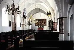 In 1995, the nave was restored and frescos from the beginning of the 16th century were uncovered. The frescos include a depiction of Saint Antonius and the arms of Christen Skram and his wife Anne Reventlow. Frescos on one of the vaults are dated as 1656, which is presumably the date of a previous restoration. A votive ship also hangs in the center of the nave which was installed in 1920.