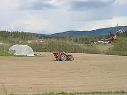 In 1826 the farm was registered as having 7 horses, 28 cattle and 32 sheep. In 1939 this number had risen to 9 horses and 69 cattle; sheep had been discontinued but ducks and chickens had been added. The farm is also used for fruit cultivation. In older times limestone extraction and burning was conducted northeast of the farm, at Steinskogen.[5] Limestone burning is an old characteristic of Bærum municipality, and a lime kiln is the inspiration for its coat of arms.[7] Lime from Øverland was used at Akershus Fortress in 1629 and 1661.[8] Around the same time, the farm also operated a nearby sawmill.[9]