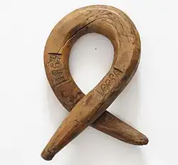 The coat of arms was granted on 29 April 1983. The official blazon is "Vert, a wooden staple argent" (Norwegian: I grønt ei sølv helder). This means the arms have a green field (background) and the charge is a wooden staple Norwegian: hegd or helder). The charge has a tincture of argent which means it is commonly colored white, but if it is made out of metal, then silver is used. This is a type of ring or staple that was historically made of wood and it was used to fasten a tree trunk to a rope in order to haul it over the land. Similar devices were used all over Norway, but this particular shape is typical for this area. The arms were designed by Ola T. Rybakken. The municipal flag has the same design as the coat of arms, but the staple design is off-center on the flag.[10][11][12][13]