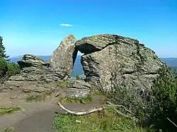 A notable feature on the mountain is the natural window called Kamenné okno, located about 600 metres north of the main summit.[10]