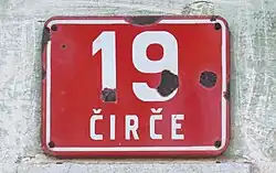 Čirčiče was mentioned in written sources in 1363 as Czyczericz and Cziczericz pey Chrainpurg (and as Ziecricz pey Chrainburg in 1369). The medieval transcriptions indicate that the name was originally *Čičerič(an)e, which can be derived from the Slavic personal name *Čičerъ, thus meaning 'Čičerъ's people'.[4] Locally, the settlement was also called Čirče,[5] a syncopated form that is also the name of the corresponding neighborhood in Kranj today. In the past the German name was Zirtschitsch.[2][3]