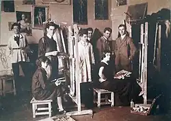 Between 1921 and 1925, Kun studied painting at the Royal Art School in Belgrade, where he was taught by painters Petar Dobrović, Ljuba Ivanović and Milan Milovanović.[2] Among his classmates were Stanislav Staša Beložanski, Anton Huter, Momčilo Moma Stevnović, Stanka Lučev and others.[3] Milovanović and Ivanović in particular influenced Kun's artistic development, which is why later in his artistic career he wavered between form and color and between painting and graphics, while Dobrović had an influence on his social involvement.[4]