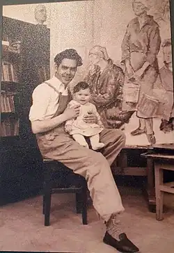 In September of the same year, he participated in an anonymous competition to design the coat of arms of Belgrade, in which 56 artists from all over Yugoslavia took part. The competition ended in November, and Kun's work under the title Crvena trojka (Red Triptych) was awarded the first prize of five thousand dinars. His design became the official coat of arms of Belgrade, which is still used today.[7] The same year Kun married Nada Ratković, an art history student at the Faculty of Philosophy in Belgrade, whom he met in 1925. During her studies, Nada was a member of a Marxist Club and, due to her communist activities, was arrested and brought before the State Court, but was released due to lack of evidence.[8] Đorđe and Nada first lived in Čubura, and in 1935, after their daughter Mira was born, they moved to Kun's studio in the attic of the Vojislav llić Elementary School in Vračar, where they lived until 1937.[7]